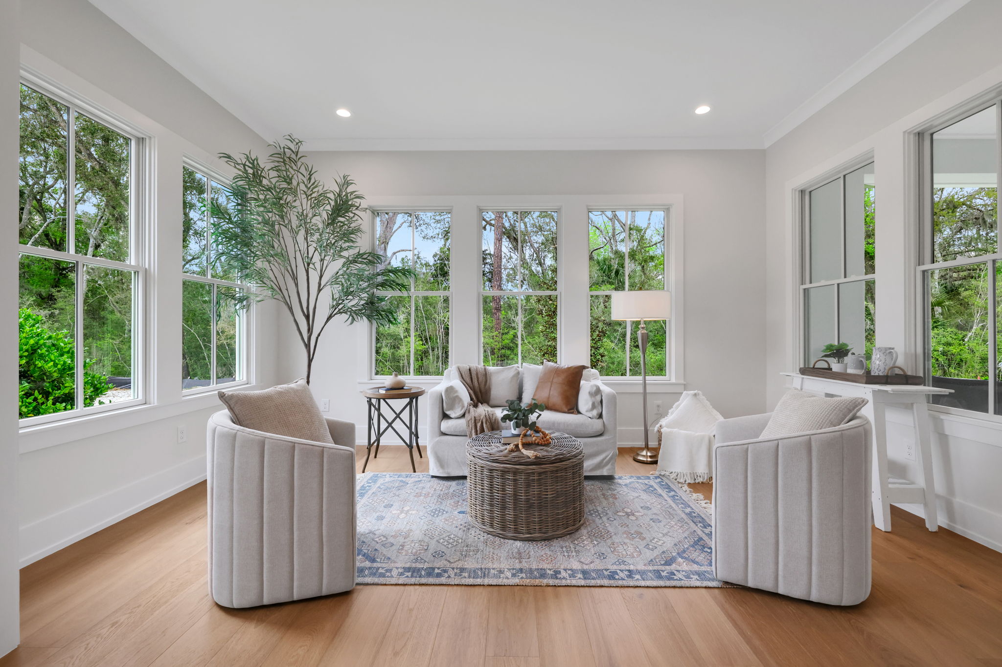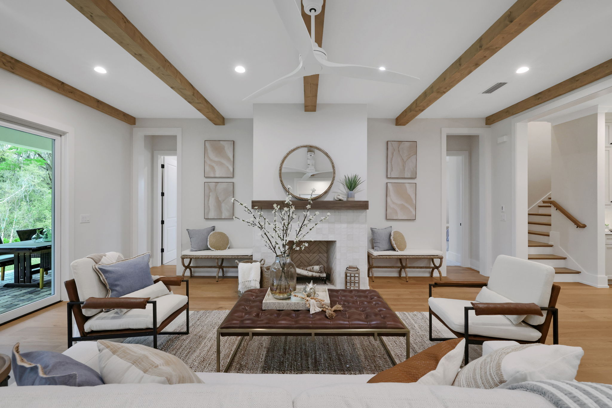 This stunning Modern Coastal Farmhouse in River Landing at Twenty Mile blends timeless coastal architecture with modern luxury in one of Northeast Florida’s most sought-after communities. Featuring board and batten siding, natural wood accents, and a standing seam metal roof, this custom home offers elevated curb appeal with a clean, contemporary edge.